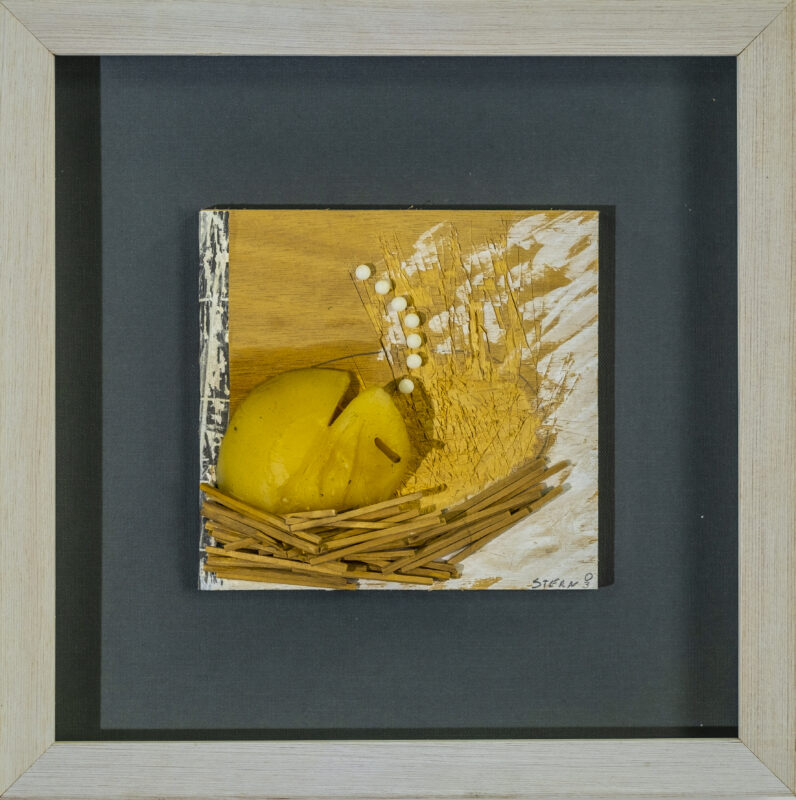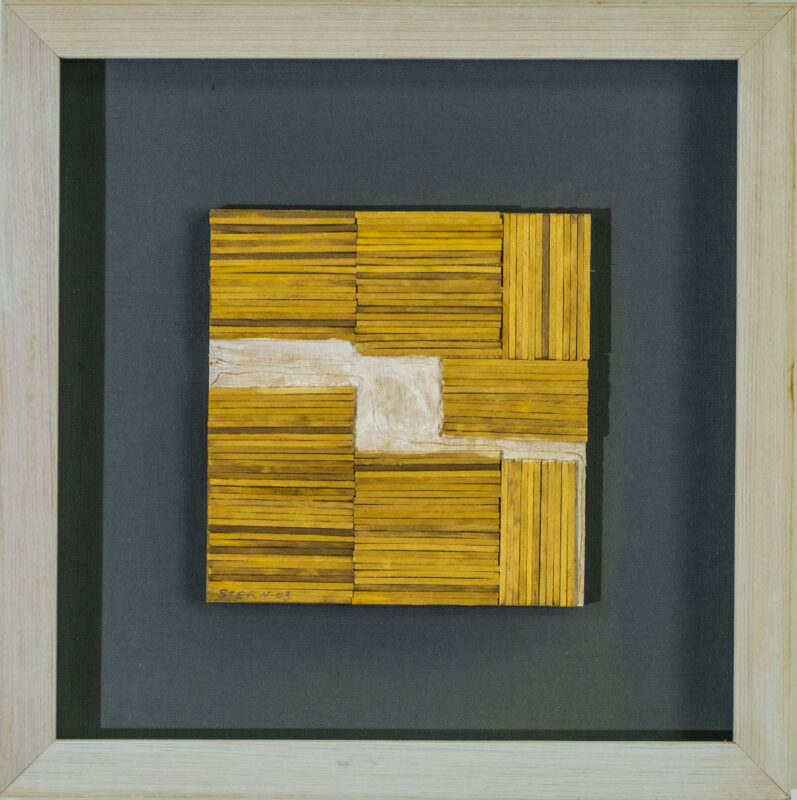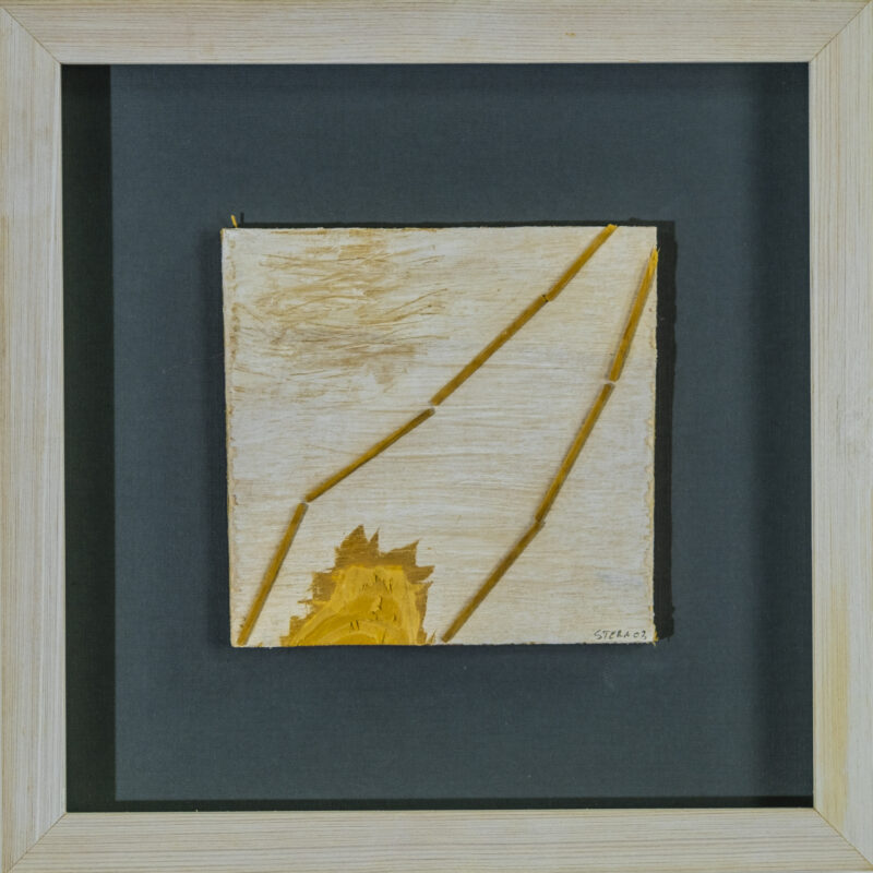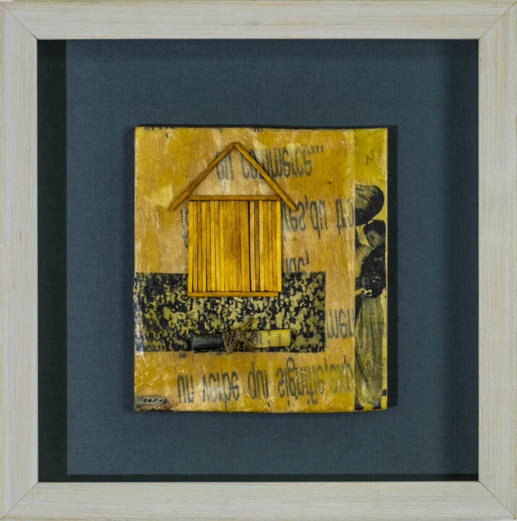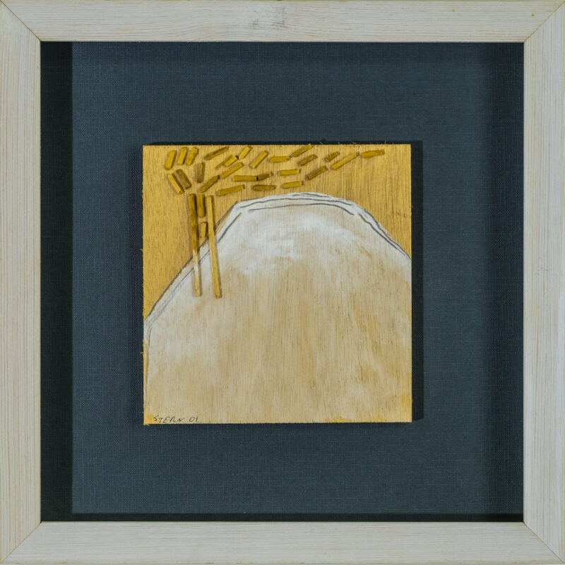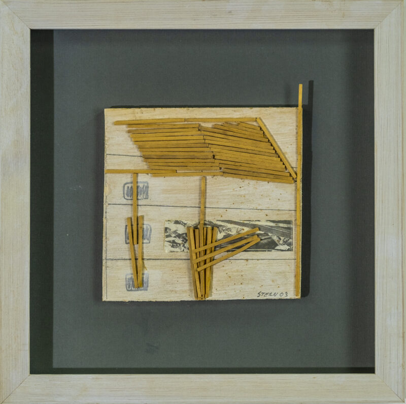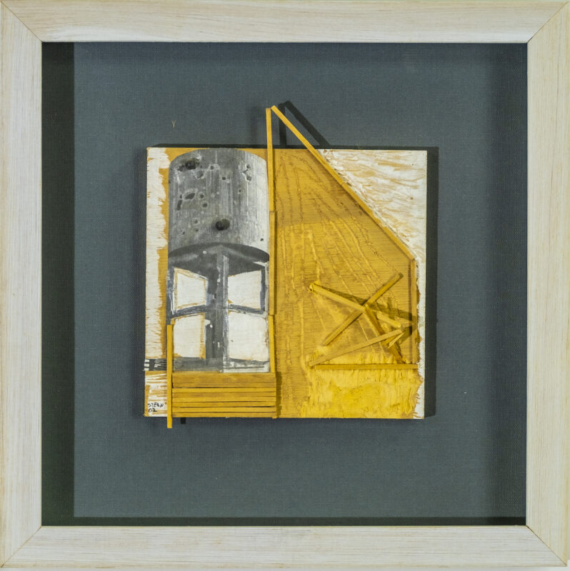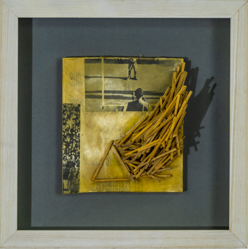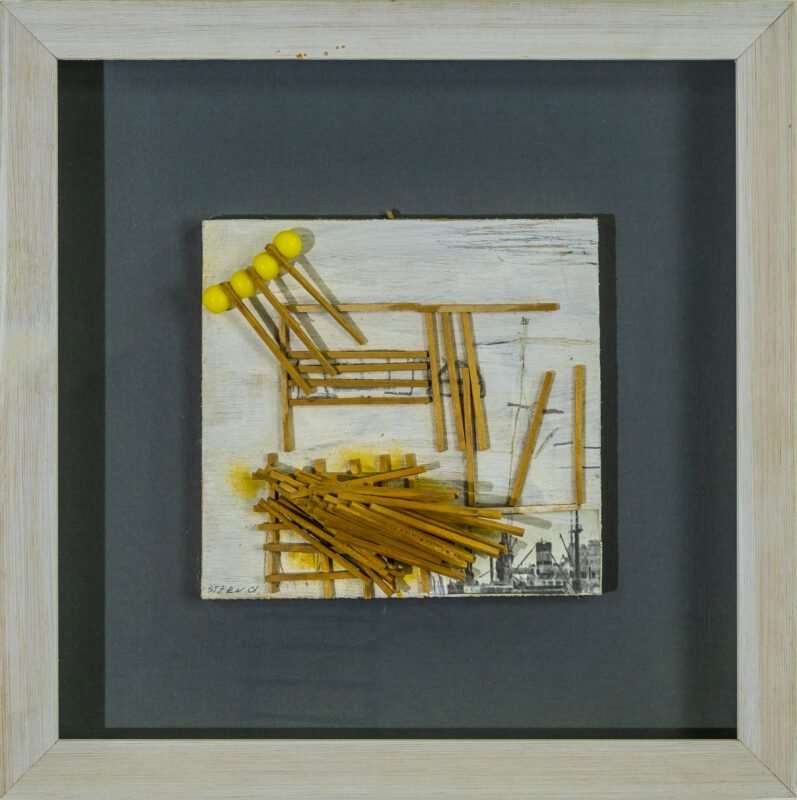 The historical photographs, all in black-and-white, serve Stern as a base for the works’ third and top layer, which transcends into the three-dimensional realm: surfaces of artificial green grass and constructions made of matches. Apparently the most concrete in relation to the other two, this plane embodies – by its very essence, and often in its “architecture” – the inner spiral typifying the course of time and consciousness, which gradually implode, returning to the past on a route of accelerated disintegration. Stern’s match towers are like a miniaturized paraphrase of the aspiration for power and control underlying the Tower and Stockade perception; an important match-system introducing the concept of the transient and temporal alongside moments of great naivety; moments of dreaming about sea and boats, houses and sun, made of matches whose heads – their vitality and burning potential – had been truncated and circumcised.
