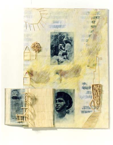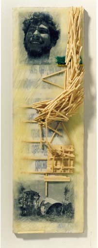 Though he is not the first to declare the gradual disintegration of the Zionist ethos, Stern’s work is unique in the troubling, disconcerting echo of very contemporary racist thought as a base for his acts of plunging into the memory books of Israeli culture. While constructing this dialogue between the literary parts and the plastic parts, affinities are created, stemming from “a place of both persecutor and persecuted, from the black bits and immense semi-dark chasms of the second generation.” This unsettling link forces you to take a stand toward your own history, compelling you to re-examine the nature of the unconscious interdependence between the layers of historical memory. Through the dialogical confrontation he generates between power and weakness, between fore-documenting photographs and match towers imbued with child-like innocence on the verge of disintegration, Stern poses questions concerning the nature of power built on the Holocaust trauma: what part of it was built on an illusion of optimism, as a backdrop of protective statehood; what part of it is not immune to the deep permeation of horror; how much of it represses the fascism option as one which lies within it, and how much of it is an inescapable hidden potential which attacks from any side – from that of the persecutor, and in a different situation, from that of the persecuted.