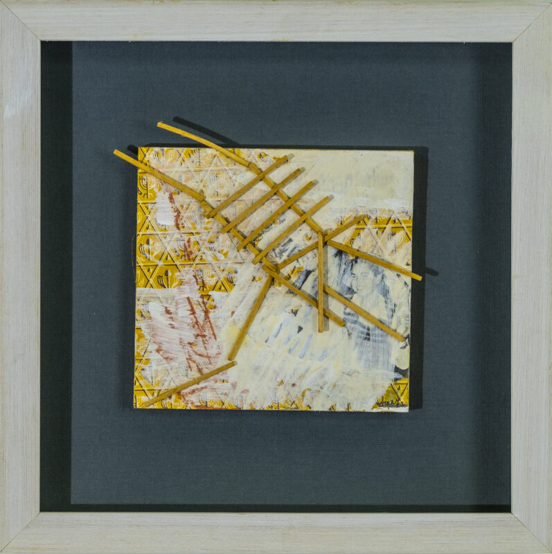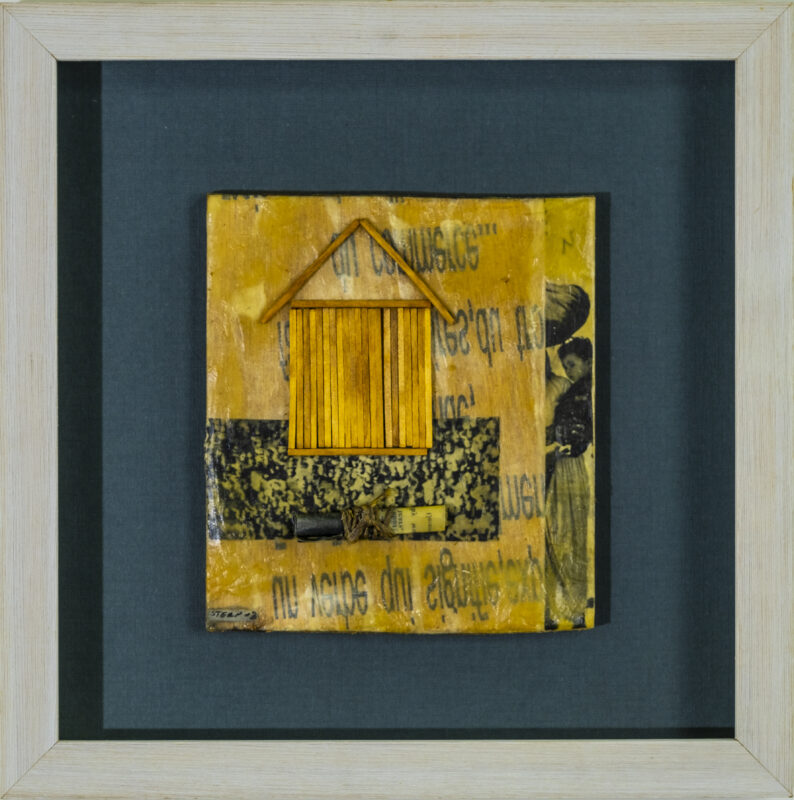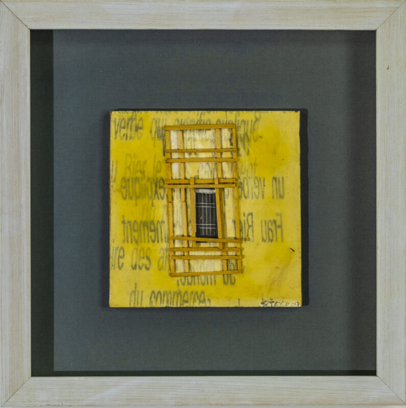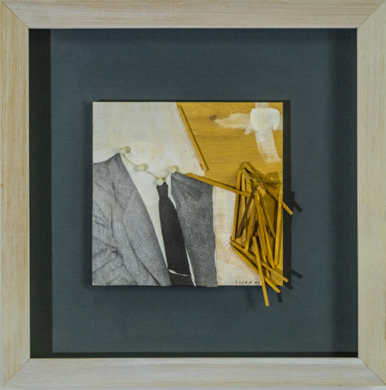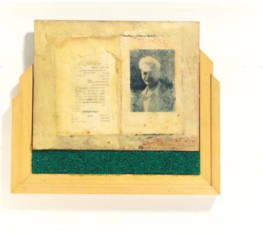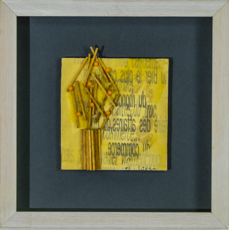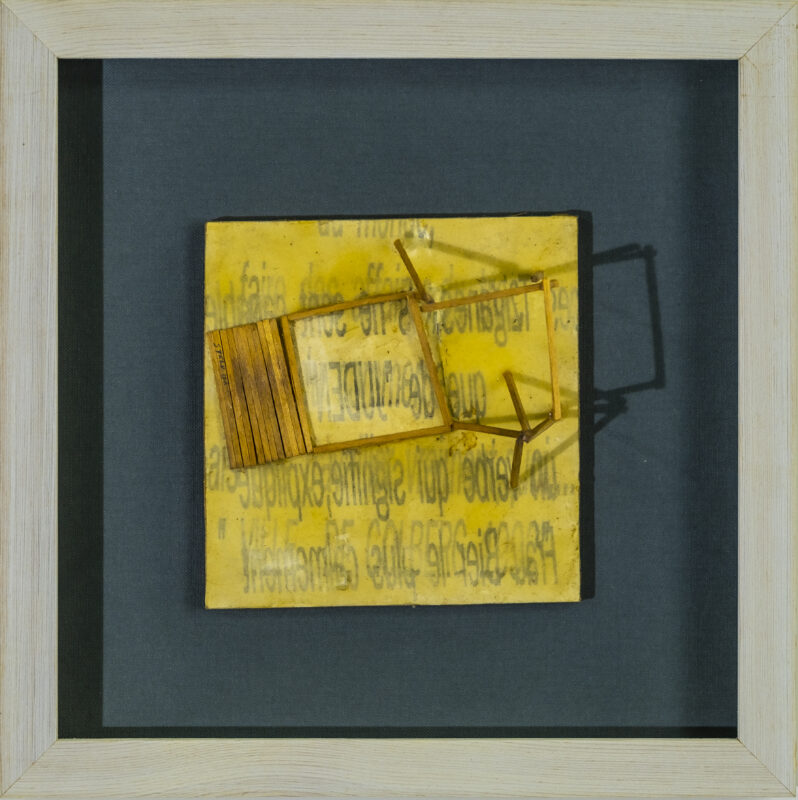 In the beginning of this series was the text: written in French, printed in a 1970 French daily; an interview with Mrs. Bier who talked about the gypsies, comparing them to the Jews: “The gypsies, said Mrs. Bier calmly, are like the Jews; they do business, monkey business, trade… but they aren’t fit for real work…” No more than the usual smack of racism which, this time, in its specific formulation, at this late timing, seared the consciousness of Evyatar Stern – an Israeli artist living in Paris at the time – leaving a deep scar. This text would be buried under every work he was to execute in the subsequent years, and would serve as a white ground, the necessary foundation for an artwork. A ’90s banality of racism, this text would emerge from underneath layers of wax, book pages, artificial lawns and constructions of beheaded matches populating his works.