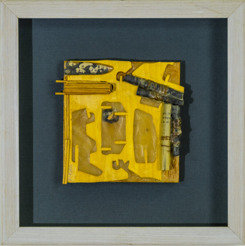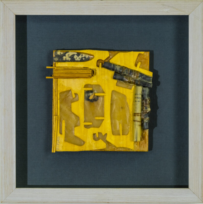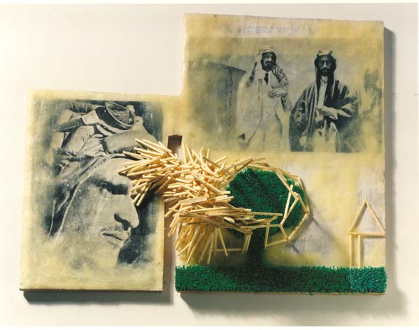 The visible plane of the works (laid on the wax layers covering the buried text), deals entirely with the recent, short history of the Zionist-Israeli ethos. A stratified, albeit detached, link is made between a European subconscious which persistently pounds and kicks below the surface, and the tremendous effort of Zionist culture to obscure, repress and conceal its existence and residues.